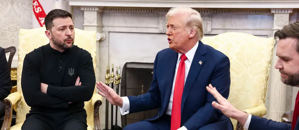 Das Treffen zwischen den beiden Präsidenten im Weißen Haus war mit Spannung erwartet worden - und begann zunächst auch friedlich. Rund 40 Minuten beantworteten Selenskyj und Trump vor Beginn ihres Gesprächs hinter verschlossenen Türen Fragen der Presse im Oval Office. Dann geriet die Zusammenkunft aus dem Ruder.