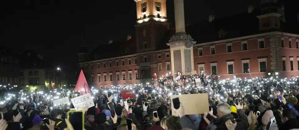 Nach dem Tod einer schwangeren Frau haben in Polen Zehntausende Menschen gegen das rigide Abtreibungsrecht protestiert. Die Frau gilt als erstes Opfer des seit einem Jahr geltenden nahezu vollständigen Abtreibungsverbotes.